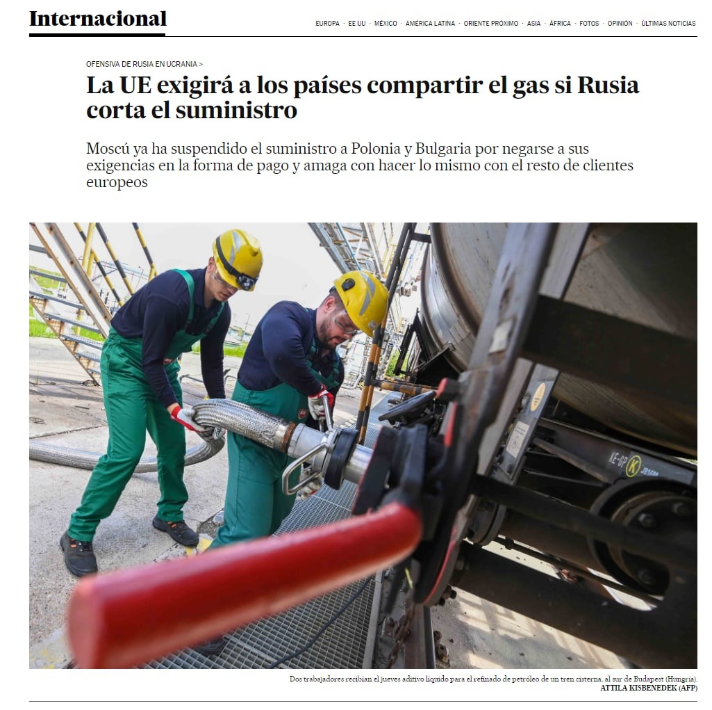 Испанское издание отмечает, что, несмотря на активный поиск альтернативных источников поставок энергоносителей, ЕС все еще не в состоянии полностью заменить российский импорт на закупки у других стран.