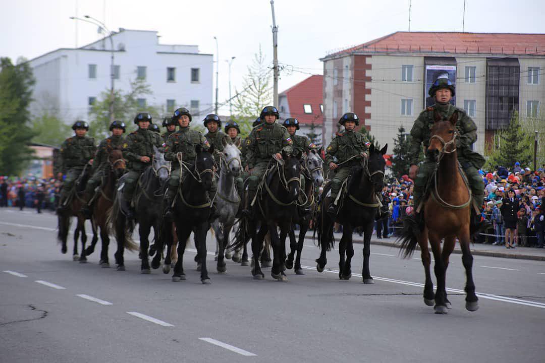 Едут-едут по Кызылу наши казаки. Бойцы вьючно-транспортной роты 55 отдельной мотострелковой горной бригады на параде в Тыве