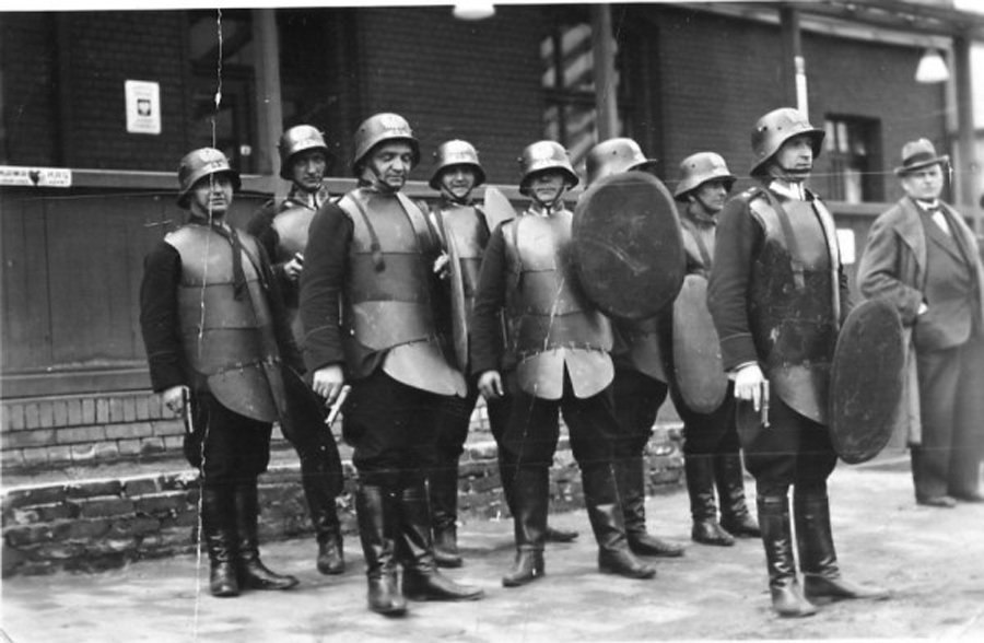 Испанские родельерос или германский ОМОН? Нет, эти дизельпанковые ребята из польской полиции времен интербеллума #доспехи #экипировка #Польша #шизомилитаризм