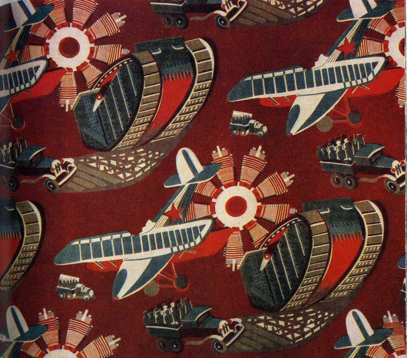 В ранние годы советская власть уделяла внимание агитации даже в лёгкой промышленности. Однажды буржуазные цветочки на тканях решили заменить символами нового времени: тракторами, дирижаблями и машинами. Нашлось место и танкам с самолетами. Печатные агитткани на фабрике в Иваново разрабатывали художницы-авангардистки Варвара Степанова и Любовь Попова #танки #бронеарт #авиация