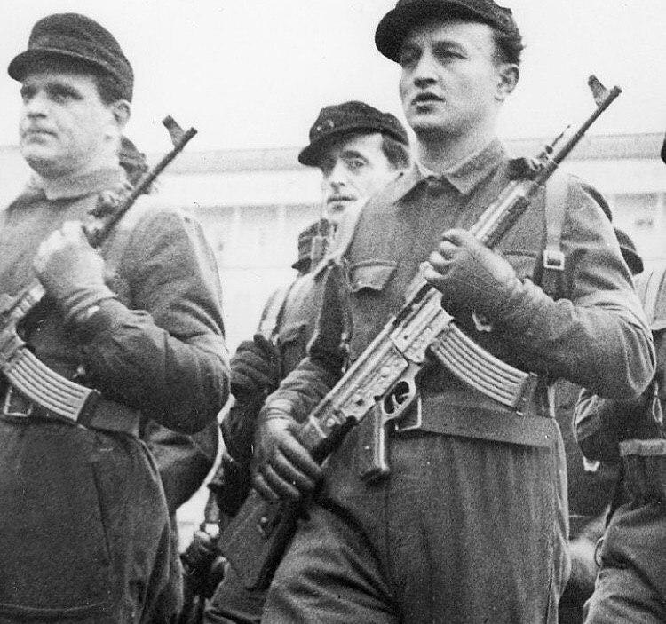 Члены военизированной милиции - боевых дружин рабочего класса в ГДР с автоматами Stg. 44. 1958 год.