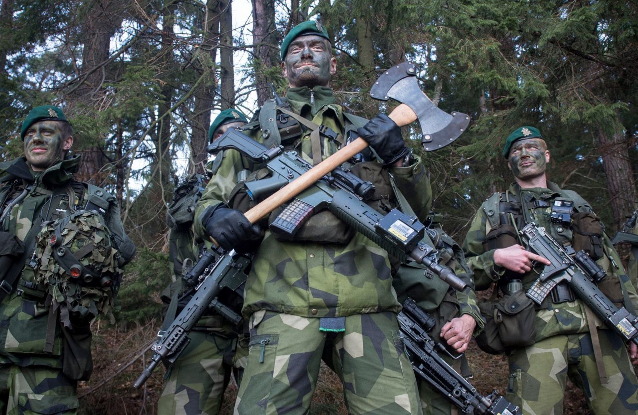 Шведские солдаты помнят наследие викингов! Конечно, викинги с такими двухлезвийными секирами не бегали. Это лишь популярный образ, не имеющий отношения к реальности.