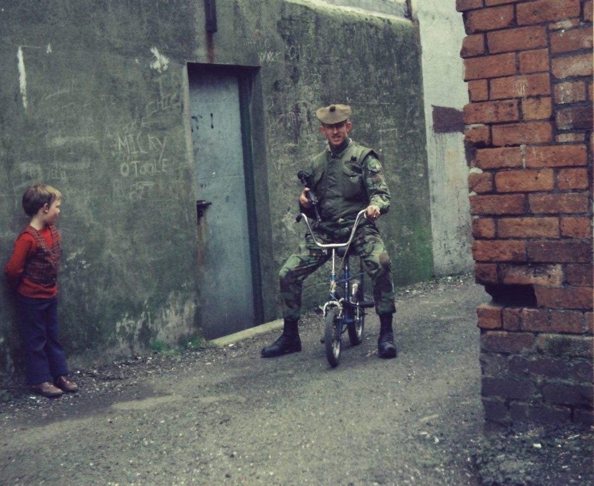Велодрагун. Солдат шотландского пехотного полка инспектируют районы Белфаста, 1970-е годы.