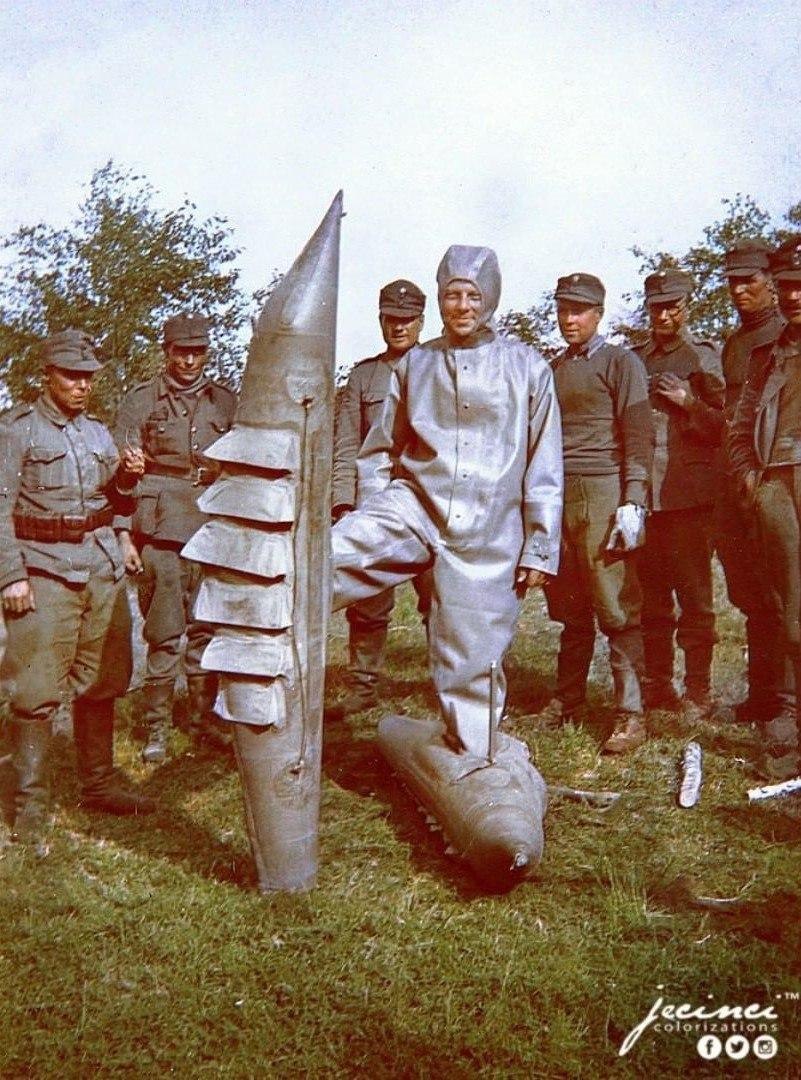 Прогулки по воде или Ихтиандр по-фински. Демонстрация финским солдатом экспериментального резинового костюма для преодоления водных препятствий и болотистой местности. Лето 1941 года