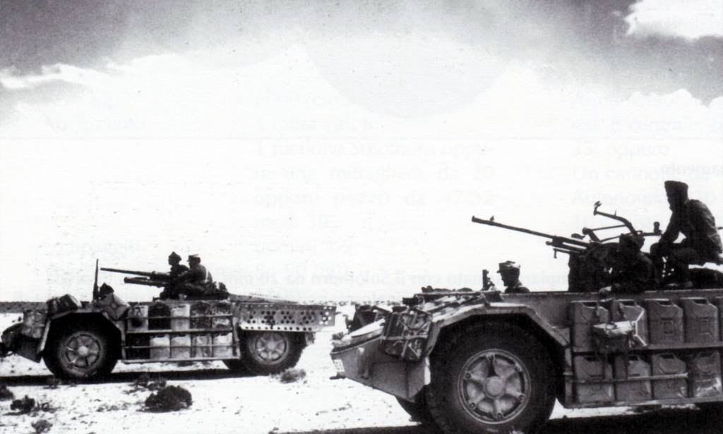 Воины пустыни. Итальянское спецподразделение на машинах разведывательных машинах AS42 Sahariana. Эти машины были созданы специально для рейдовых действий в пустыне и оснащались пулеметами, противотанковыми ружьями, автоматическими пушками и даже 47-мм орудиями.