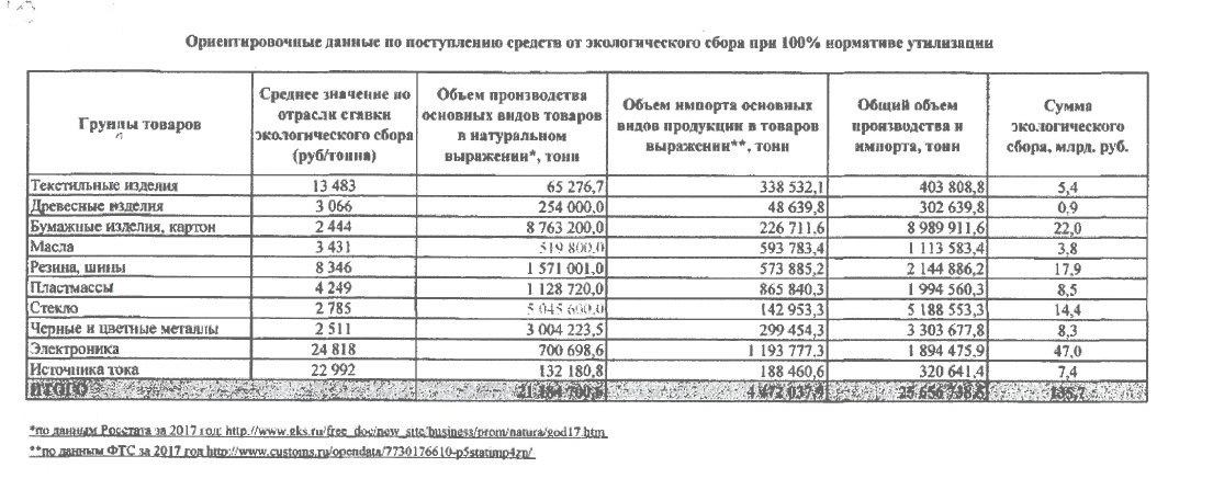 Я смотрю письмо Минприроды в Правительство «О повышении эффективности расширенной ответственности производителей…», то, с которого и началась активная работа по разработке концепции о 100% РОП. В письме есть табличка с ориентировочными данными о поступлении средств экологического сбора при 100% нормативе утилизации.