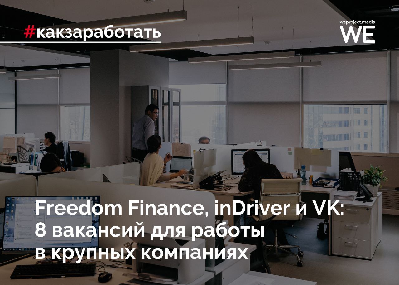 Freedom Finance, inDriver и VK: 8 вакансий для работы в крупных компаниях