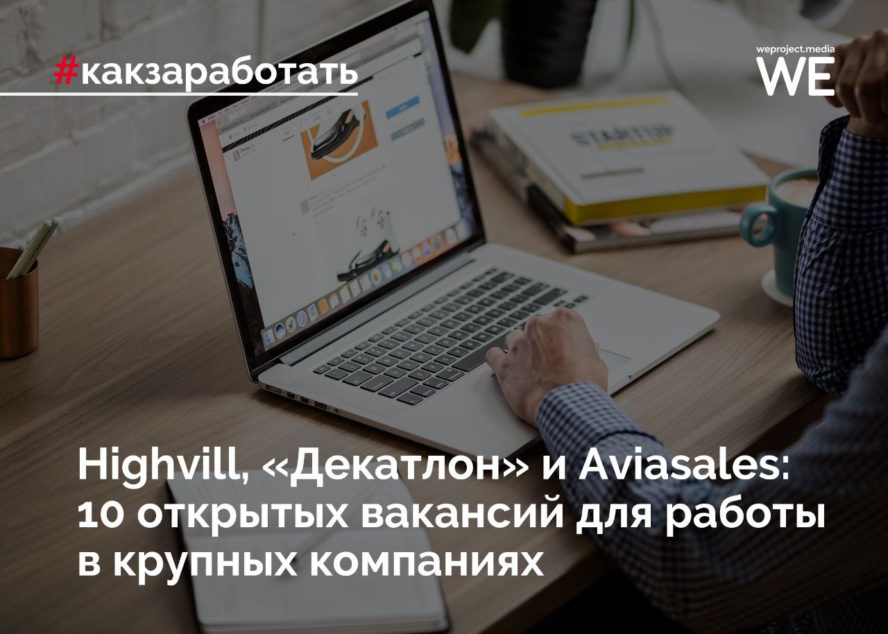 Highvill, «Декатлон» и Aviasales: 10 открытых вакансий для работы в крупных компаниях