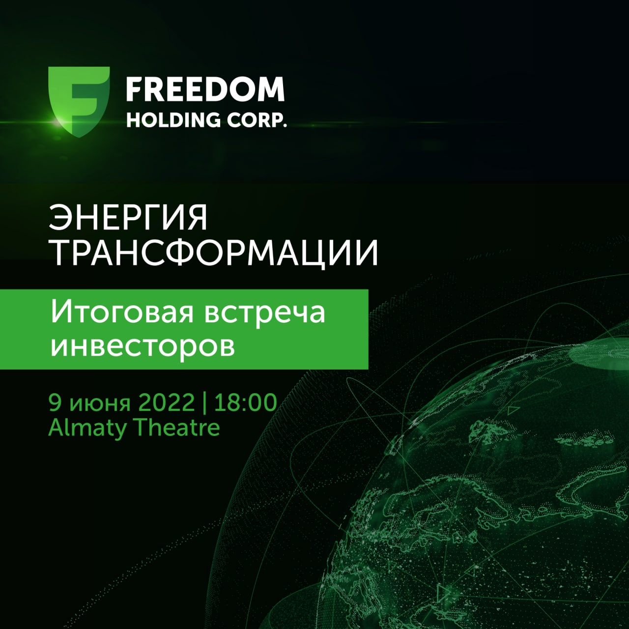 В четверг, 9 июня, приглашаем на презентацию годового отчета Freedom Holding Corp. (NASDAQ: FRHC). Она стартует в 19:00 по времени г. Нур-Султан.