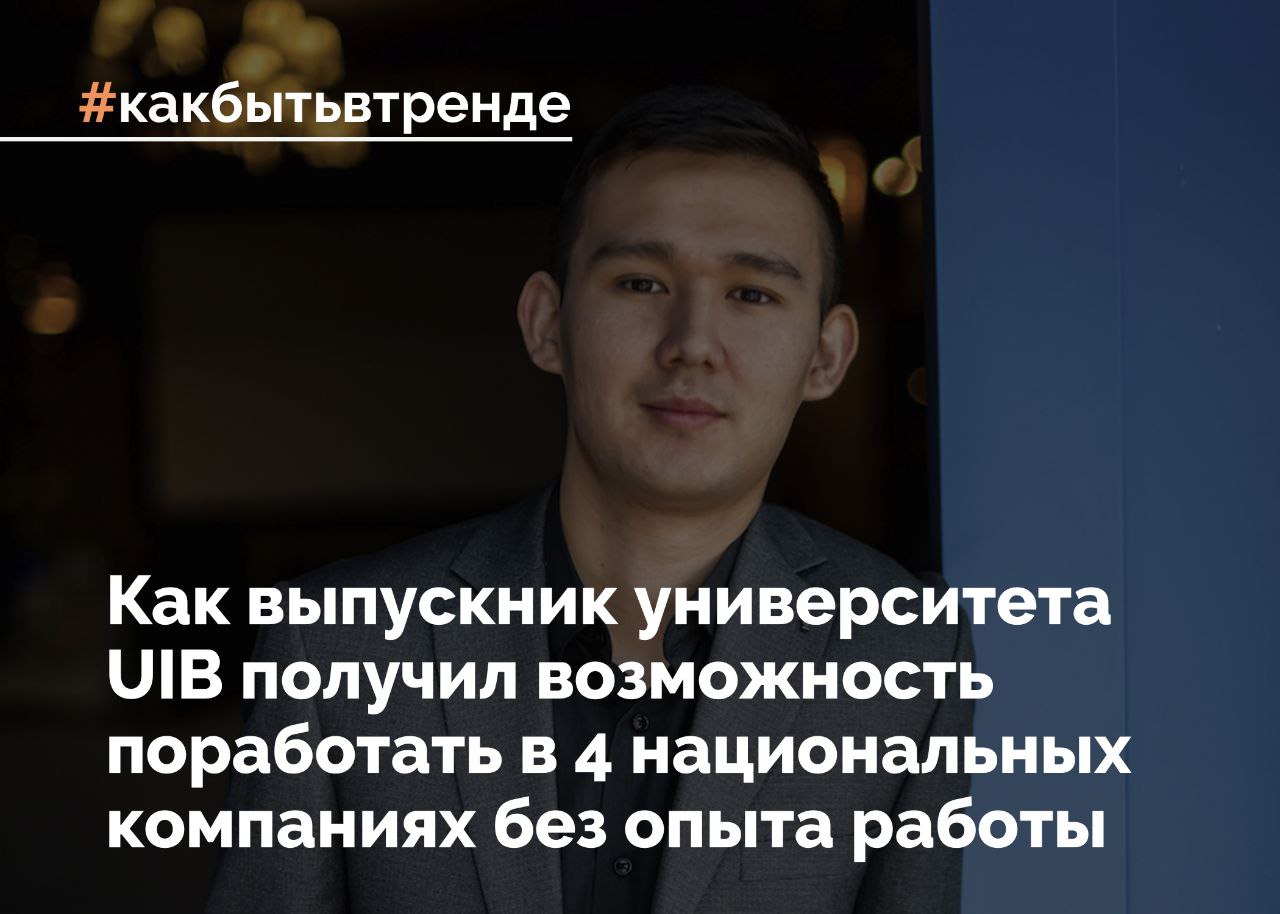 Выпускник университета UIB Еркинбек Ерканат рассказал о возможностях, которые дал университет, о конкурсе «Жас Оркен» и работе в компаниях «КазМунайГаз» и «Казпочта».