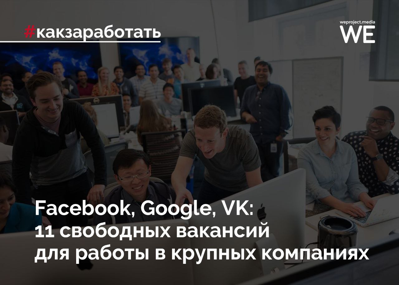 Facebook, Google, VK: 11 свободных вакансий для работы в крупных компаниях