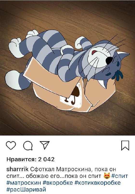 «Это первый случай появления российского анимационного героя в социальной сети в качестве самостоятельного пользователя. Один из главных героев популярного мультфильма размещает на своей страничке «закадровые» подробности жизни в деревне Простоквашино». Так, Шарик пользуется популярной соцсетью, следуя последним тенденциям и флешмобам. Например, он любит фотографировать и снимать видео с Матроскиным, умудряясь запечатлеть его в разных ситуациях. Персонаж зарегистрирован под ником Sharrrik и допускает свойственные новичкам ошибки — неровно размещает снимки, применяет всевозможные фильтры.