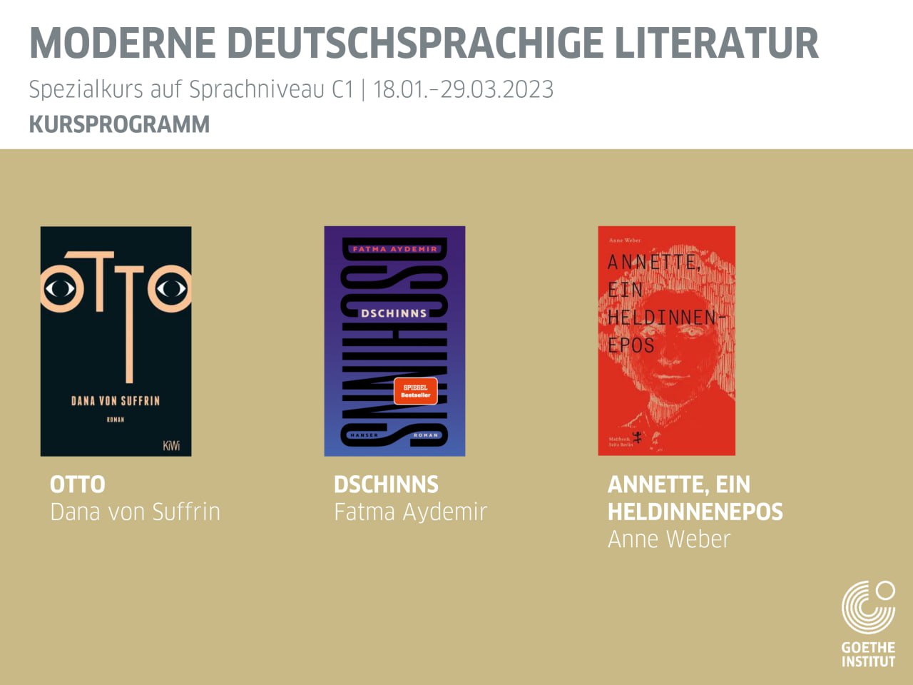 Гёте-Институт в Санкт-Петербурге приглашает на платные онлайн-курсы — «Современная литература Германии» (старт 18 января) и «Немецкое кино на немецком» (с 21 января).