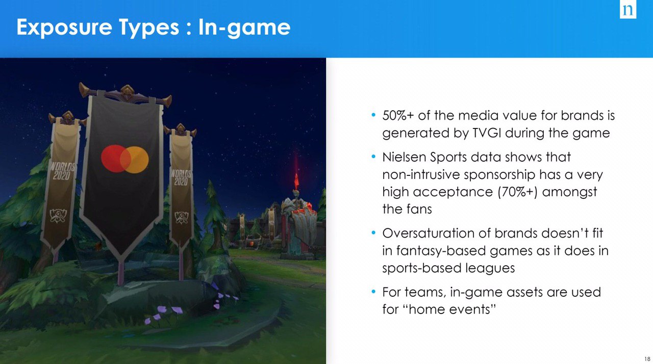 На вебинаре Nielsen проходил опрос среди маркетологов esports, 60% считают что ингейм имеет самое сильное влияние на аудиторию, и я среди них.