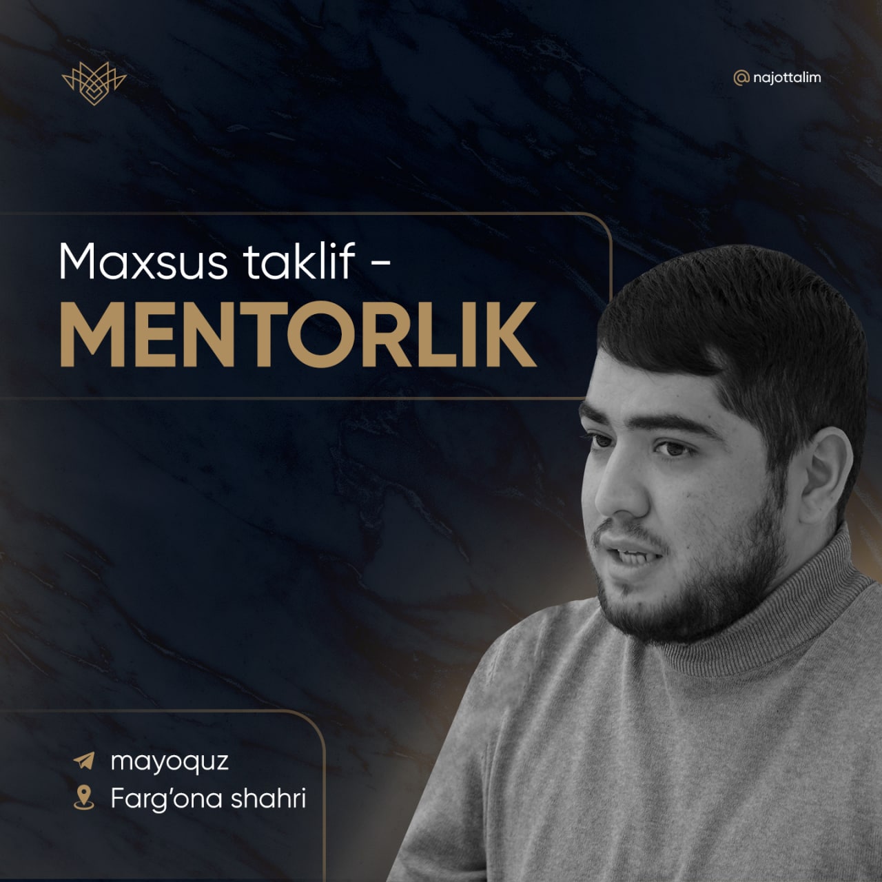 📍 Mentorlik Farg'ona shahrida o'tkaziladi.