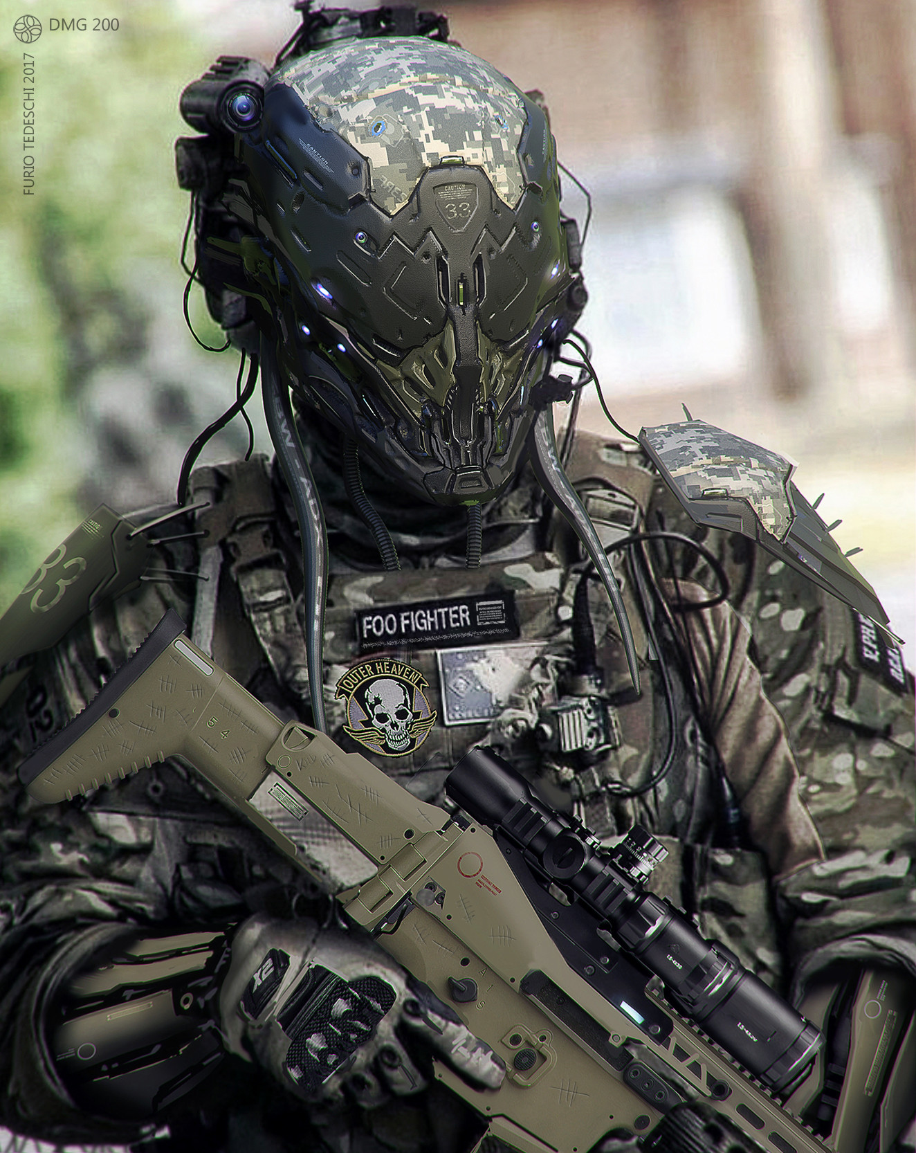 Концепт робота, предназначенного для защиты при агрессивных действиях врага, спасения заложников и штурмов. В верхней части робота расположены две пушки, использующие разрывные патроны. В нижней части две раскладные винтовки калибра 5,56 мм.