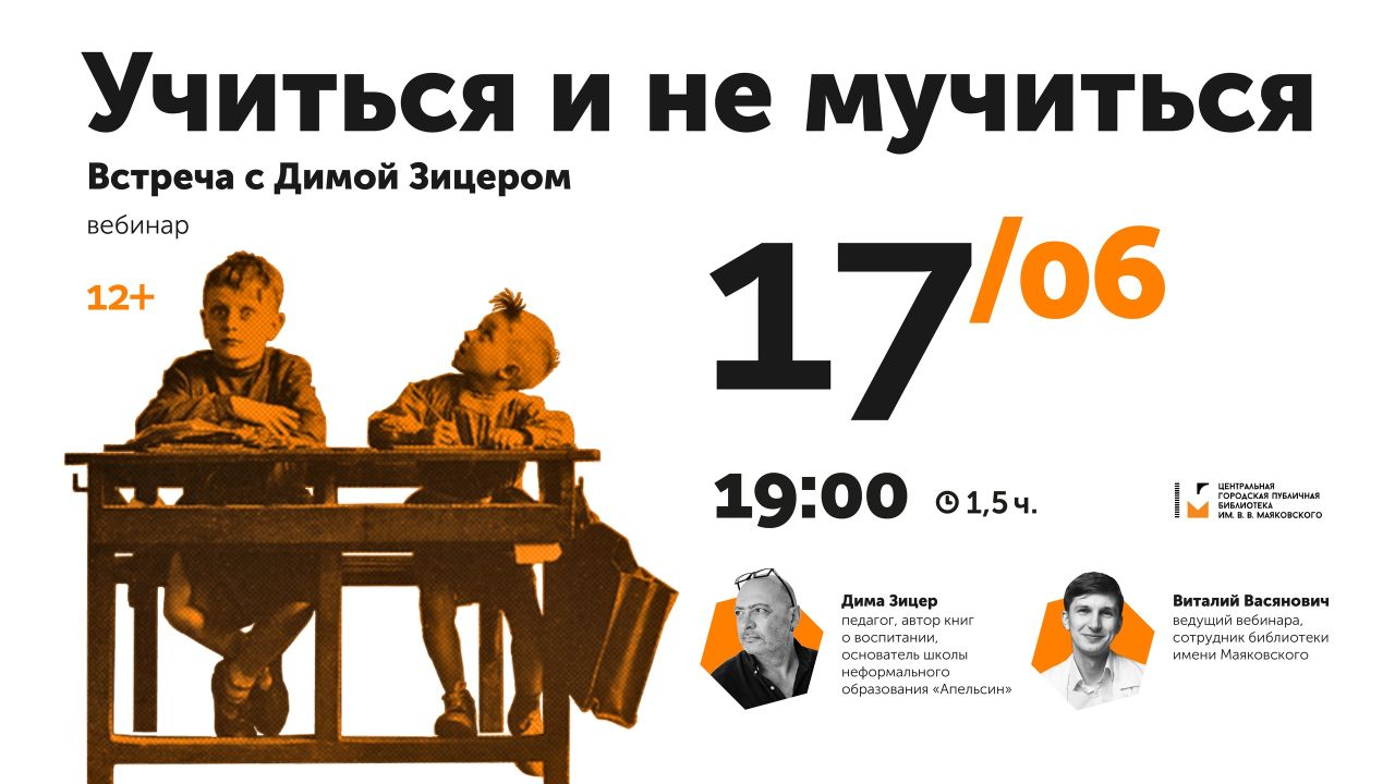 Поговорим с основателем школы неформального образования «Апельсин», автором книг о воспитании и педагогом Димой Зицером о современных форматах обучения. Для этого соберемся онлайн.