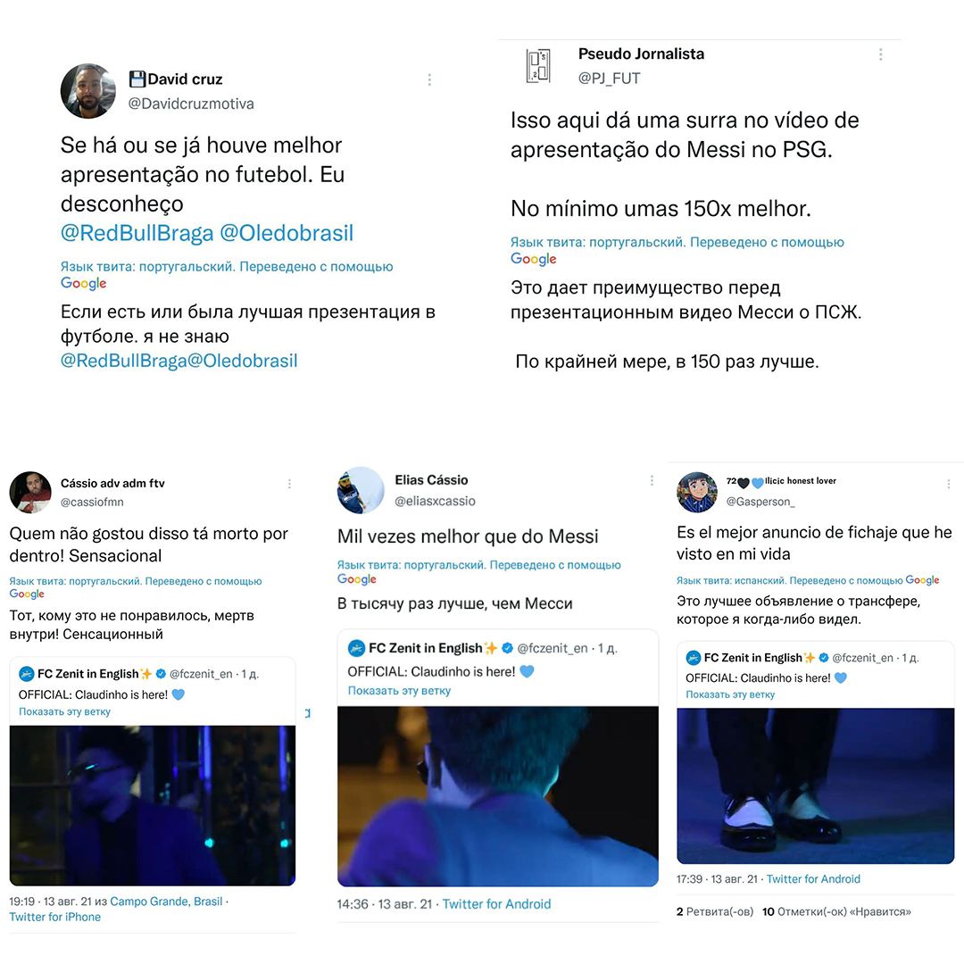 Отдельно отметим, что при выборе даты и времени публикации роликов, конечно, учитывалась разница во времени с Бразилией, так как в клубе ожидали большой реакции оттуда. Что, в общем, и получили.