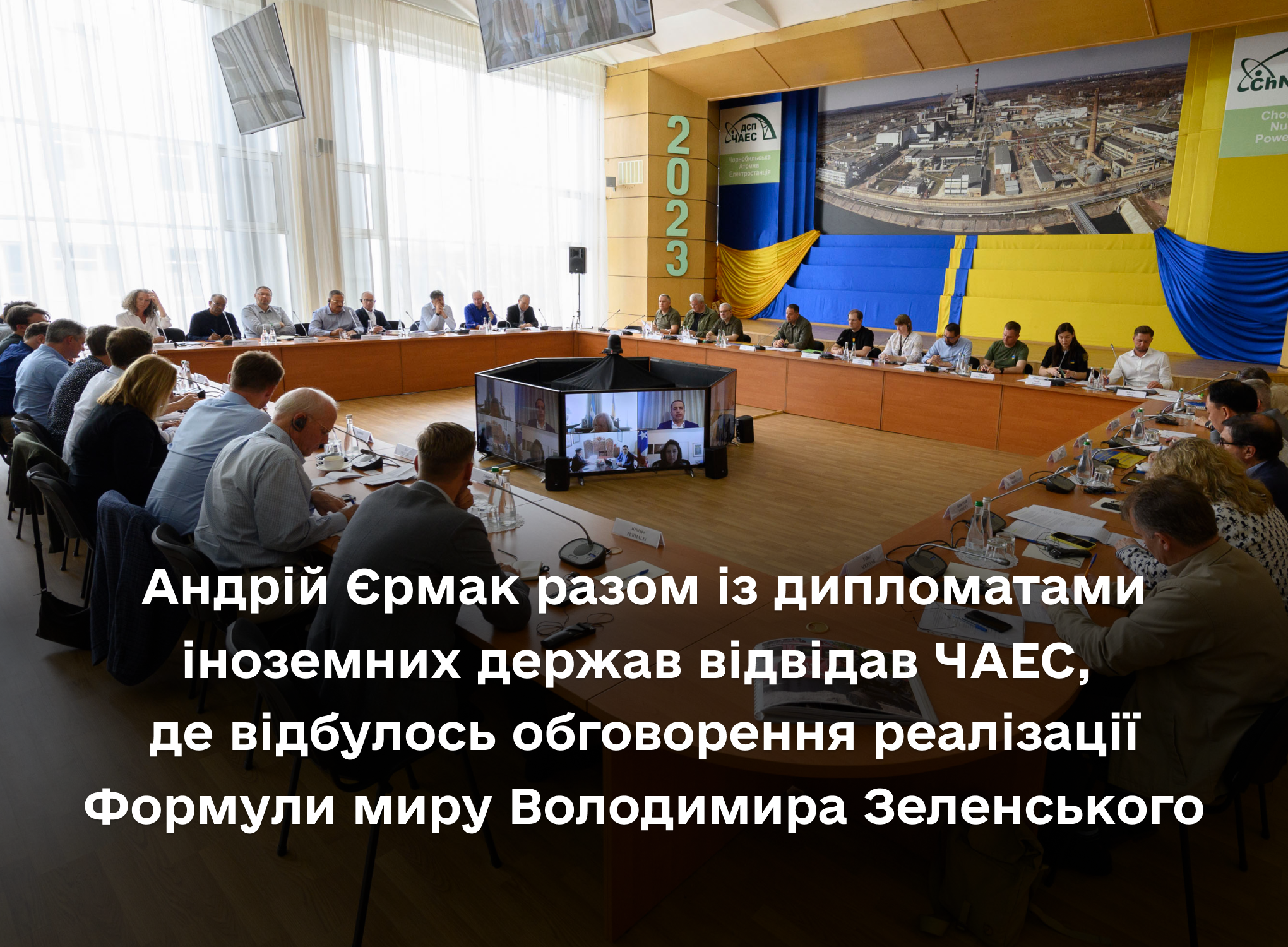 На виконання доручення Глави держави керівник Офісу Президента України Андрій Єрмак провів зустріч із главами та представниками іноземних представництв та місій, акредитованих в Україні. Зустріч відбулась на території Чорнобильської атомної електростанції та була присвячена реалізації Формули миру Президента Володимира Зеленського, зокрема виконанню пунктів, які стосуються ядерної і радіаційної безпеки.