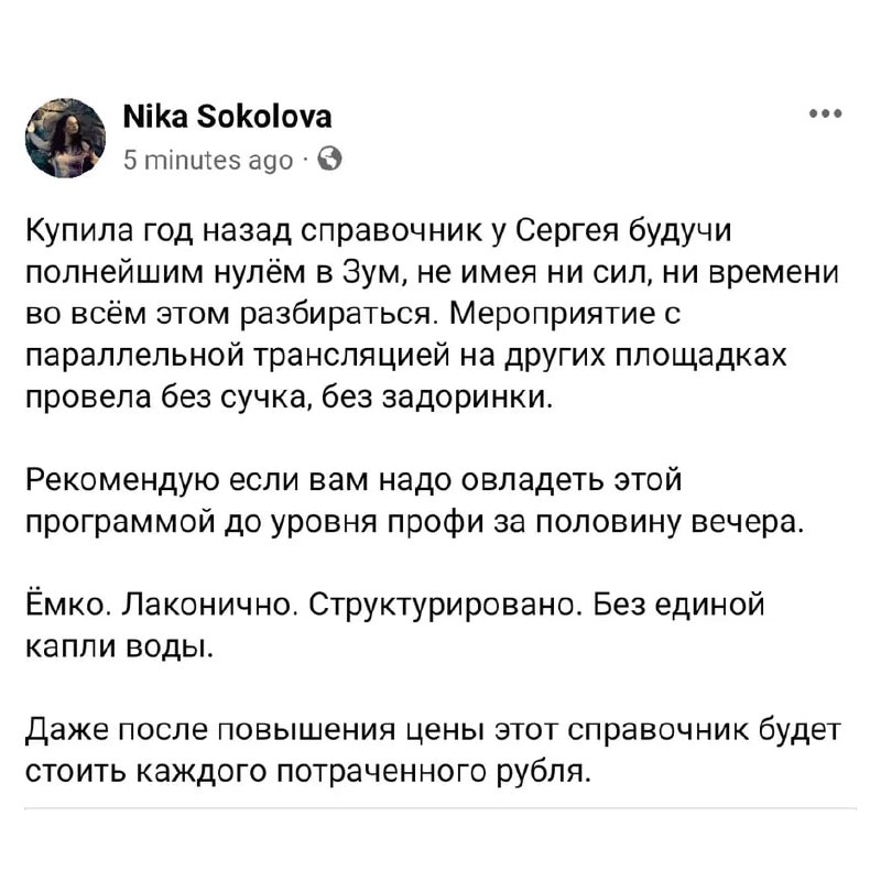Чтобы не повторять одни и те ответы по много раз, я стал выкладывать отдельные видеоинструкции и записи своих занятий в закрытый раздел на своем сайте. Сейчас там больше 100 видео, и с помощью этого справочника можно очень хорошо "прокачаться" как зум-организатор.