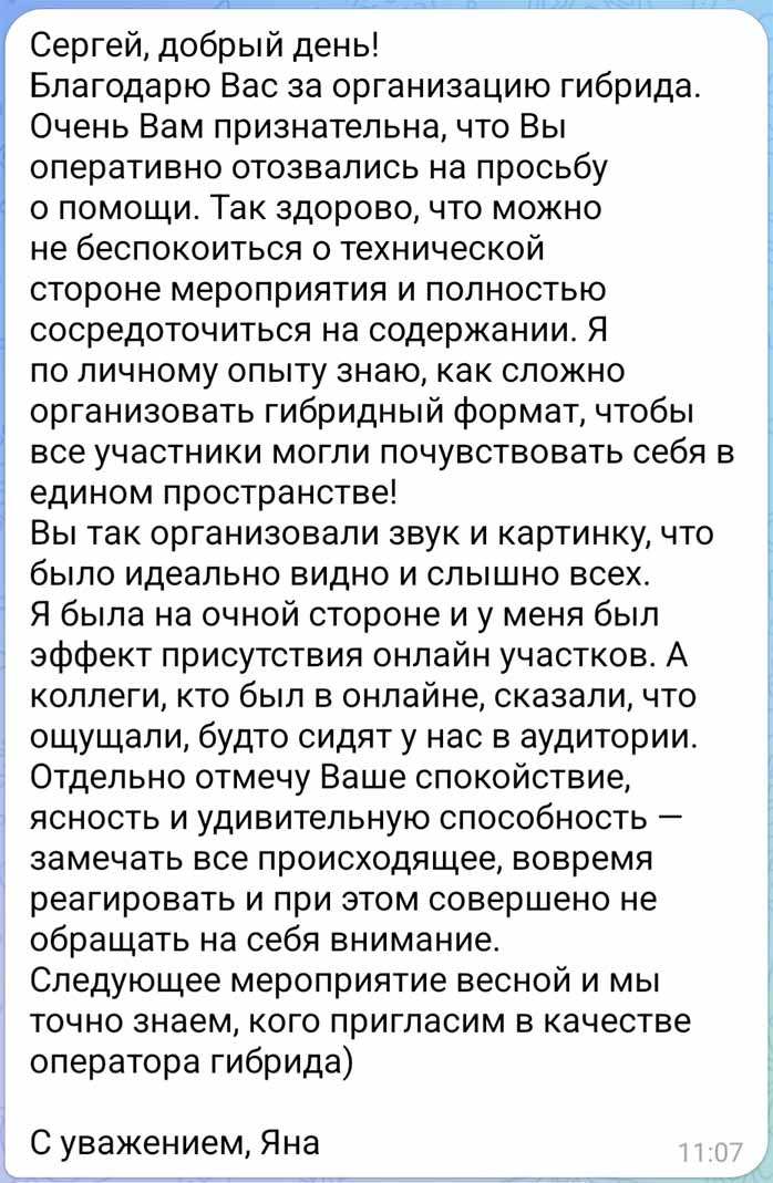 А если вам тоже понадобится провести свое гибридное событие на достойном уровне — обращайтесь, буду рад помочь. Пишите мне в личку @sergeyberlin
