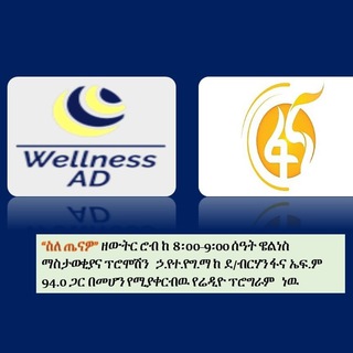 “ስለ ጤናዎ” ዘውትር ሮብ ከ 8፡00-9፡00 ሰዓት ዌልነስ ማስታወቂያና ፕሮሞሽን ኃ.የተ.የግ.ማ ከ ደ/ብርሃን ፋና ኤፍ.ም 94.0 ጋር በመሆን የሚያቀርብዉ በይዘቱ ለየት ያለና ሙሉ በ ሙሉ በሃኪሞች የሚመራ በጤና ና ጤና ነክ ጉዳዮች ላይ ትኩረት የሚያደርግ የሬዲዮ ፕሮግራም ነዉ