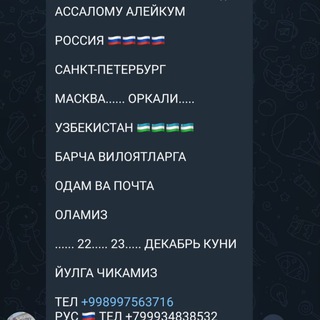 Мурожат учун тел: +998 99 756 37 16 +7 993 483 85 32