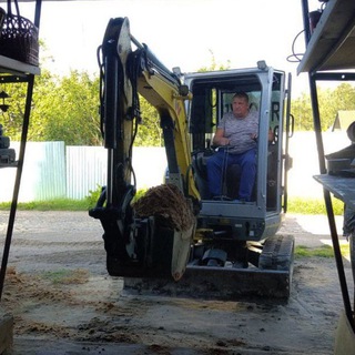 Ямобур (мини экскаватор) в работе